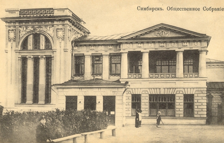 В Симбирске этот новый принцип в феврале 1853 года привёл к возникновению Симбирского немецкого собрания. Первоначально собрание объединило торговцев, домовладельцев, ремесленников, чиновников и помещиков иностранного происхождения. (когда-то немцами, то есть, «немыми» — не говорящими по-русски — на Руси называли всех иностранцев). Оно занимало двухэтажное здание, принадлежавшее помещику Родионову, на углу Большой Саратовской (Гончарова) и Комиссариатской (Кузнецова) улиц, невдалеке от городского театра.