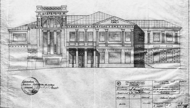 Эскизный проект реконструкции швейной фабрики № 5 под концертный зал Ульяновской филармонии. 1946 год: