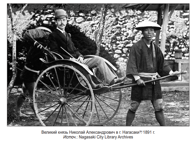 - Цесаревич Николай (род. 6 [18] мая 1868 г.) вместе с троюродным братом, греческим принцем Георгом (Георг Греческий и датский; (греч. Γεώργιος της Ελλάδας; род. 24 июня 1869 г.)) находился в Японии с 15 [27] апреля по 7 [19] мая 1891 г. в рамках своего большого путешествия на Восток. В Нагасаки их встретил японский принц Арисугава Такэхито (яп. 有栖川宮 威仁親王; род. 13 января 1862 г.), сопровождавший почётных гостей на всём протяжении их путешествия по Японии.