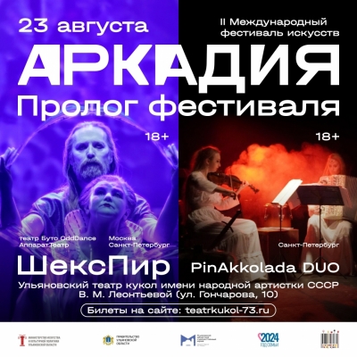 Ровно неделя остаётся до старта II Международного фестиваля искусств «Аркадия» в Ульяновске. Он пройдёт 23-25 августа на ведущих концертно-театральных и открытых площадках. Начнётся он в Ульяновском театре кукол имени Валентины Леонтьевой с пластического спектакля «ШексПИР».