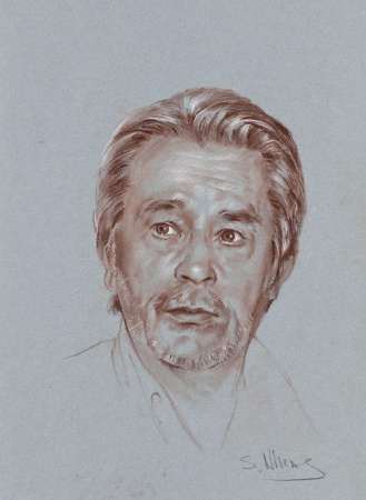— У Алена Делона в Париже брали интервью и спросили, кого он знает из российских деятелей культуры и политики. «Я знаю Путина, Михалкова, Александра Лебедя, который недавно ушел и мне очень жаль, что он погиб. И знаю Никаса Сафронова, чью картину мне так и не отдали». Когда я поехал в Париж, мы созвонились с Аленом, я передал ему картину и попросил мне попозировать. Он с удовольствием согласился. Я набросал графический портрет, который закончил в отеле и передал Делону перед отъездом. А вот для второго портрета он попросил использовать его образ, когда он был молодым. Он сам выбрал свою фотографию. И портрет, написанный с этого фото, я отдал ему уже в 2005 году, когда он вновь приехал в Москву.
