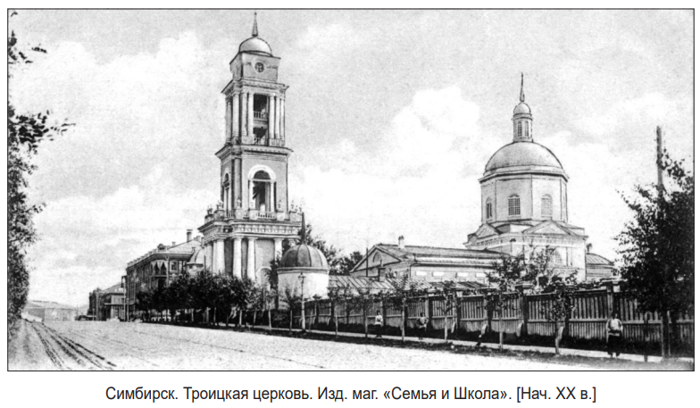- : Церкви на горе. – С. 41). 2 «Троицкая: В первонач. виде существовала в конце XVII ст. (в 1700 году Троицкий приход в Симб. уже был)…». Источ.: Справочная книжка и адрес-календарь Симбирской губернии на 1916 год / изд. Симбир. ГСК ; под ред. секр. ком. – Симбирск : Губ. типо-лит., 1916. – С. CV.
