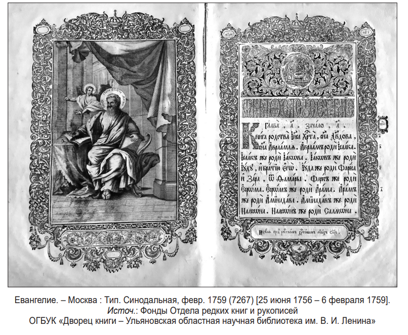 - см.: Евангелие. – Москва : Тип. Синодальная, февр. 1759 (7267) [25 июня 1756 – 6 февраля 1759].