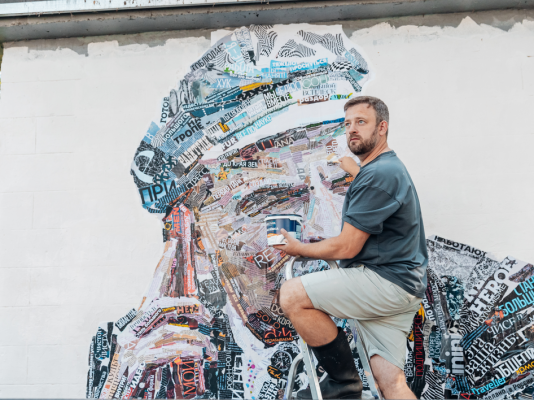 - То, что я задумывал, появилось сейчас в Ульяновске. Это репродукция моей картины в авторской технике App.Art, где изображение не рисуется красками, а выкладывается подобно мозаике из журнальных и газетных фрагментов. Здесь нет краски, а если она и появляется, то только в ретуши деталей. Мы работали над муралом три дня. Создание самого эскиза заняло неделю. Это достаточно кропотливая работа, где каждый кусочек подбирается не только по цвету, – рассказал Андрей Шатилов.