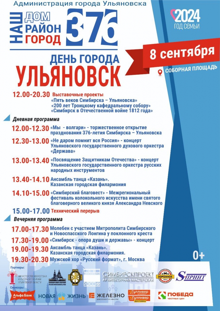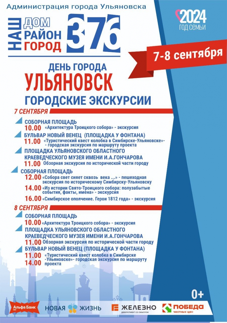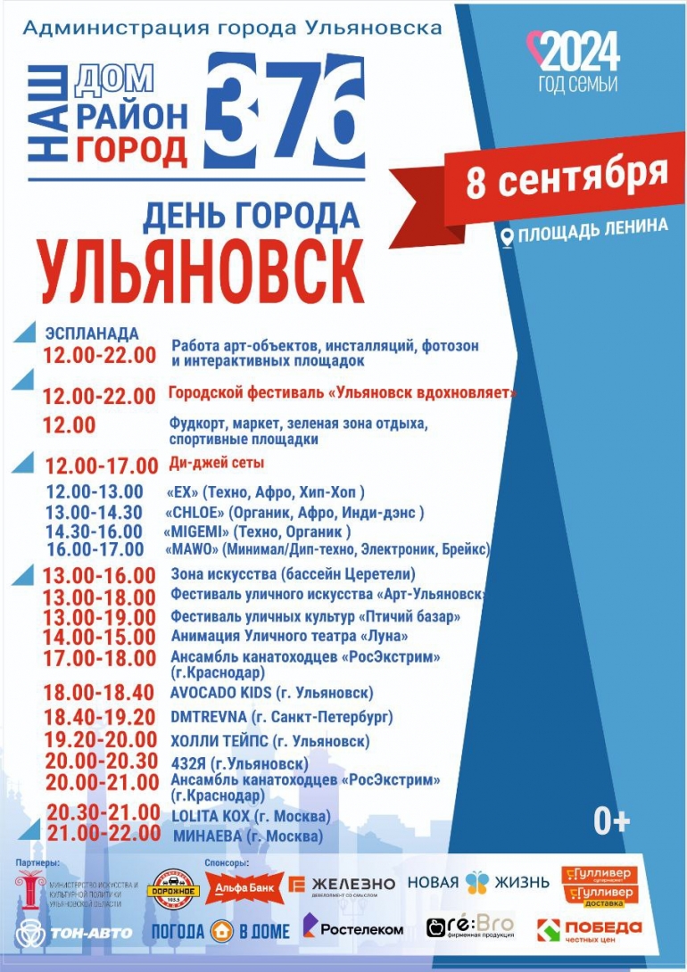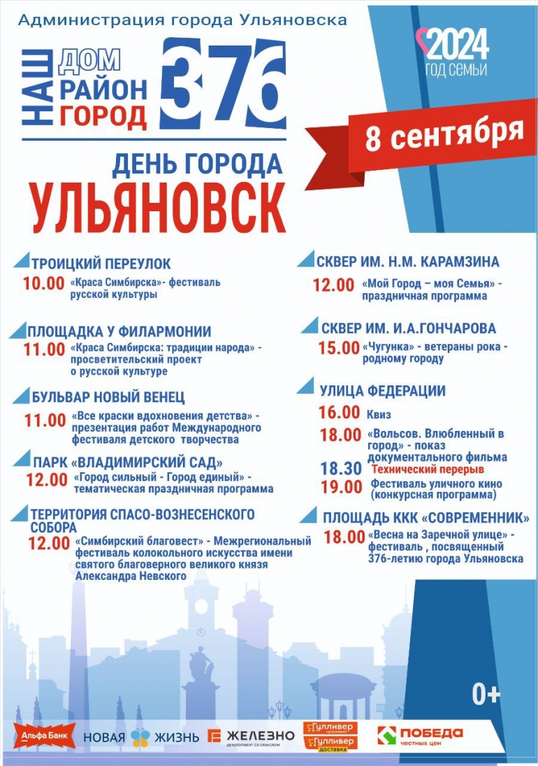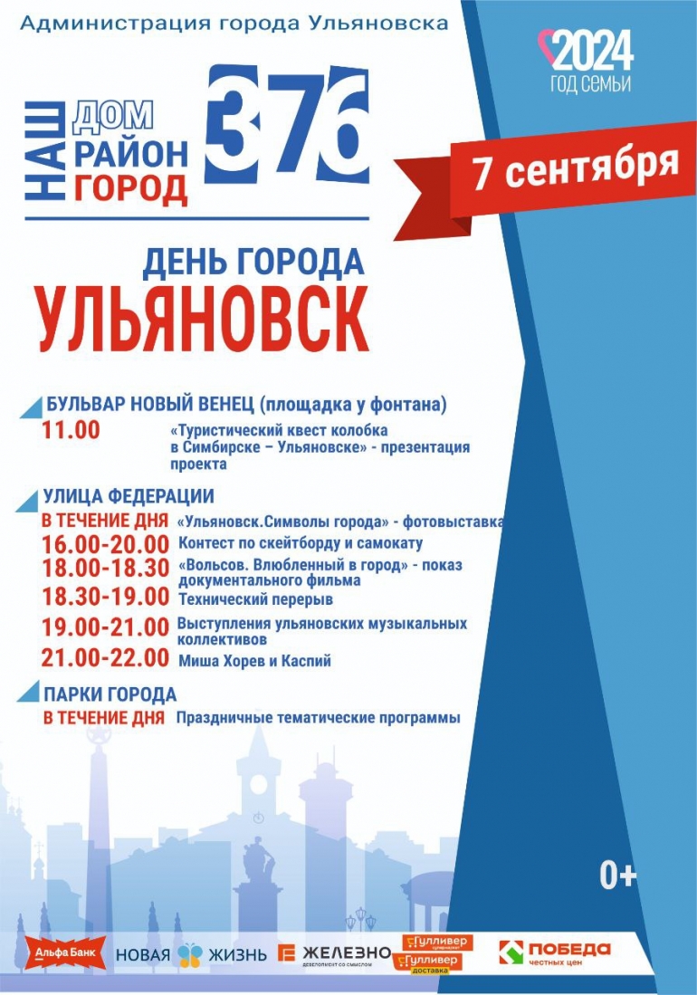 В Ульяновске ко Дню города, с 6 по 8 сентября, пройдет более 150 мероприятий. Концепция праздника «Мой дом. Мой район. Мой город».