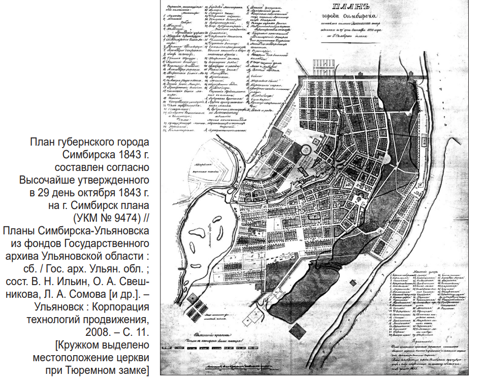 - см.: План губернского города Симбирска 1843 г. составлен согласно Высочайше утвержденного в 29 деньоктября 1843 г. на г. Симбирск плана (УКМ № 9474) // Планы Симбирска-Ульяновска из фондов Государственного архива Ульяновской области : сб. / Гос. арх. Ульян. обл. ; сост. В. Н. Ильин, О. А. Свешникова, Л. А. Сомова [и др.]. – Ульяновск : Корпорация технологий продвижения, 2008. – С. 11.