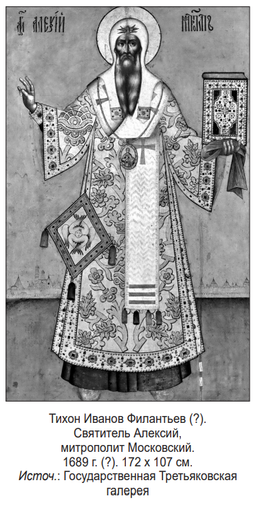«На одном из напрестольных крестов надпись гласила: “лета 7202(1694 г. – В. Я.) построил церковь во имя Алексея Митрополита и в нее крест, евангелие и всяку церковную утварь положил гостиной сотни Иван Андреев в вечное богомолие и поминовение по своих родителех”» (3).