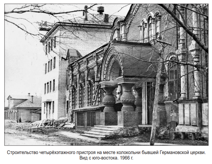 В июне 1877 г. прихожане приняли решение, утверждённое Симбирской духовной консисторией, «соорудить на свои средства новую церковь вместо ветхой». В сентябре того же года по проекту губернского архитектора Николая Павловича Воскресенского (1836–?) и под наблюдением городского архитектора Василия Андреевича Алатырцева (?–?) была начата перестройка главной части Германовского храма: