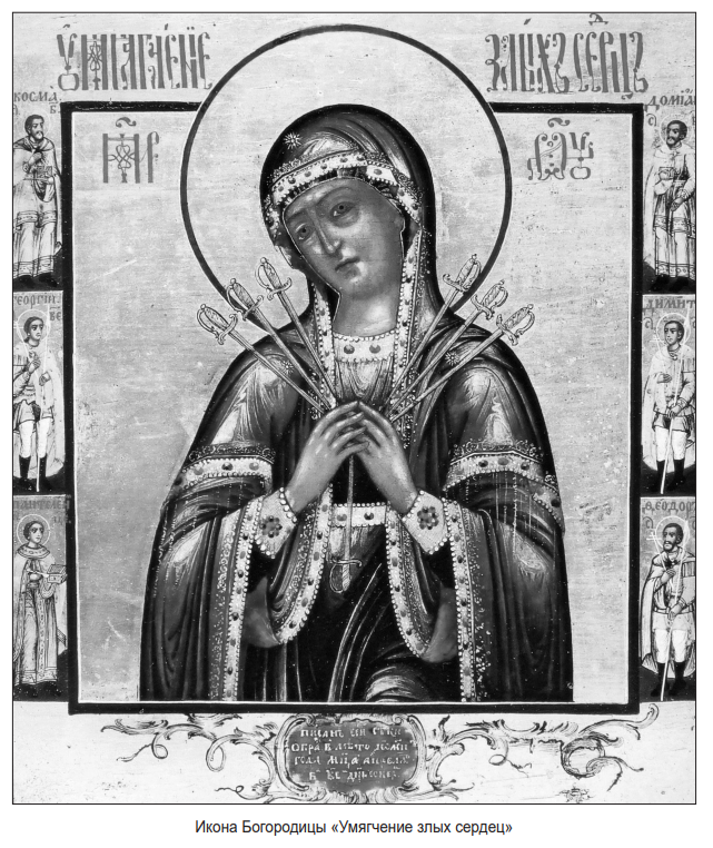 За правым первым от алтаря столбом и за первым левым ставятся особенно почитаемыя иконы: Нерукотворенный Спасов образ и образ Божией Матери “Умягчение злых сердец” (37)<…>