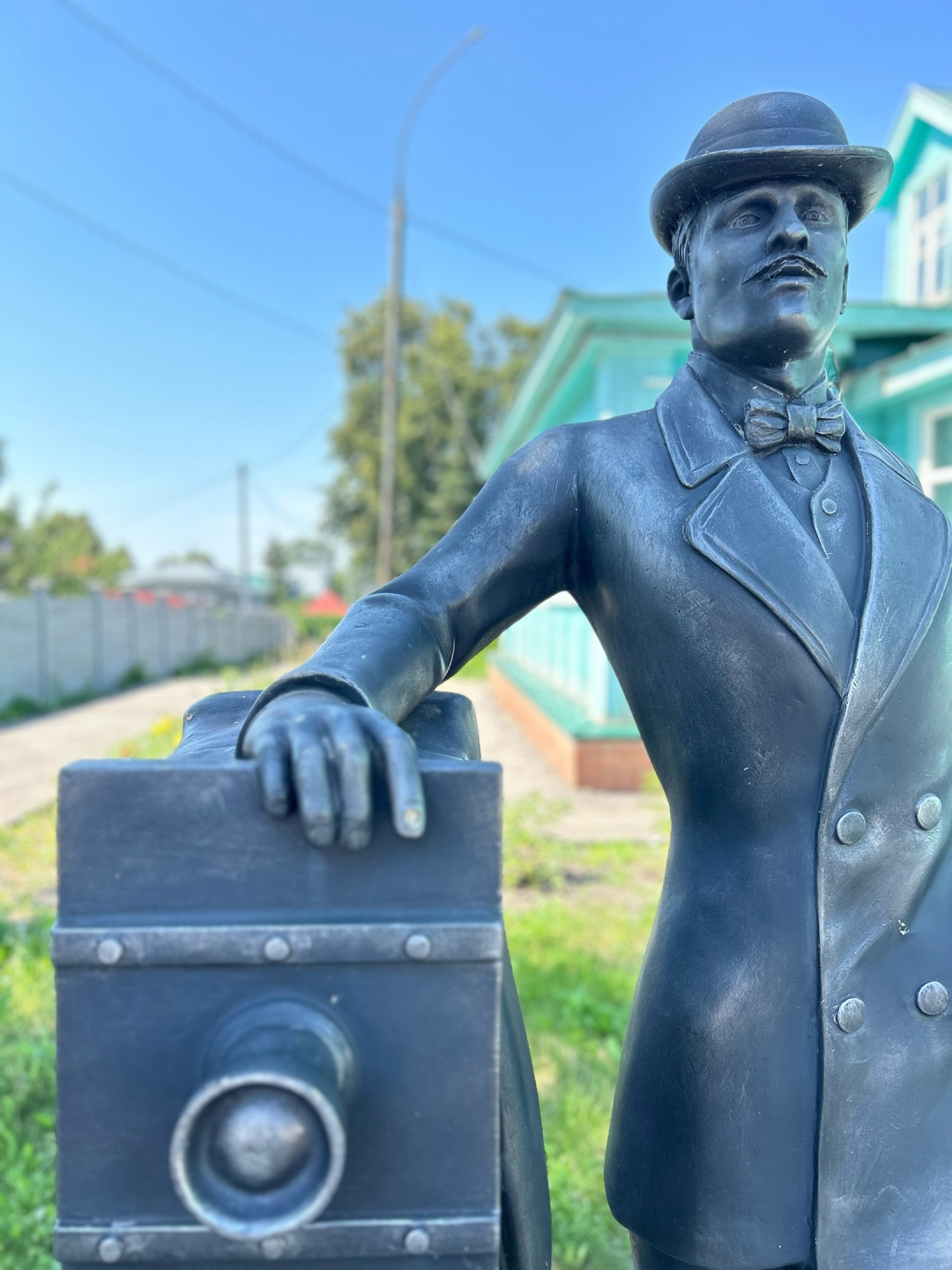 Музей «Симбирская фотография» работает в Ульяновске 20 лет. Бирюзовое здание с большими арочными окнами, почти домашними наличниками и скульптурой у входа стали привычным пейзажем в квартале Музея-заповедника «Родина В. И. Ленина». Но постройка эта новая, воссозданная по образцам усадьбы конца XIX – начала XX веков, принадлежавшей весьма влиятельным купцам Сахаровым. Место для музея выбрано неслучайно: именно здесь сто лет назад располагался один из первых фотопавильонов Симбирска.