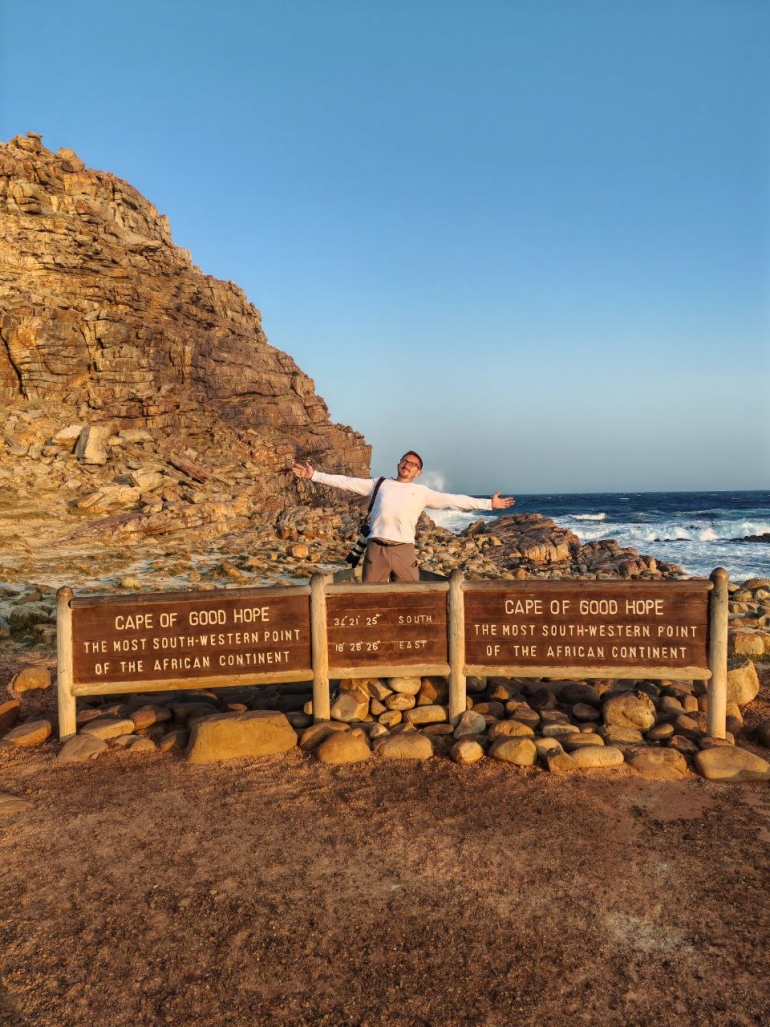 «Мечтал оказаться тут со школы! Конец земли африканской. Ветрище сбивает с ног. Меня, обернутого в одеяло, едва не унесло в Антарктиду. До неё отсюда всего 4000 км по прямой».