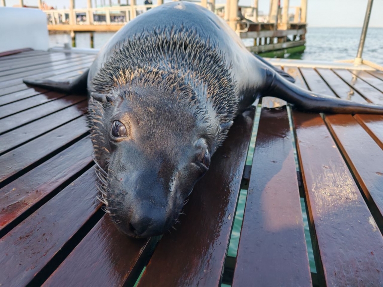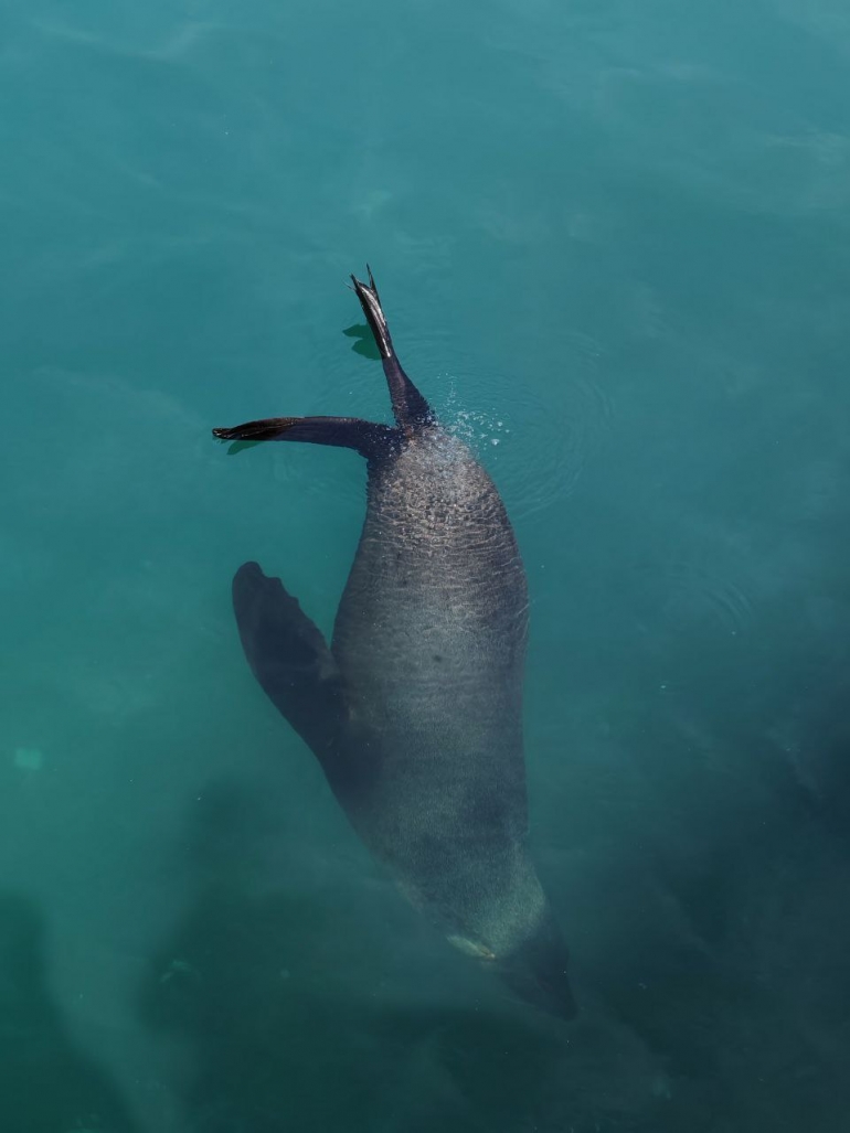 «Котики легко догоняют катамаран и запрыгивают на палубу, бесцеремонно обнюхивая всех, кто там находится. В поисках еды могут даже перелезть через вас. То же и с пеликанами. Эти огромные десятикилограммовые попрошайки легко приземлятся вам на голову, потому что откуда им виднее, что вы едите».