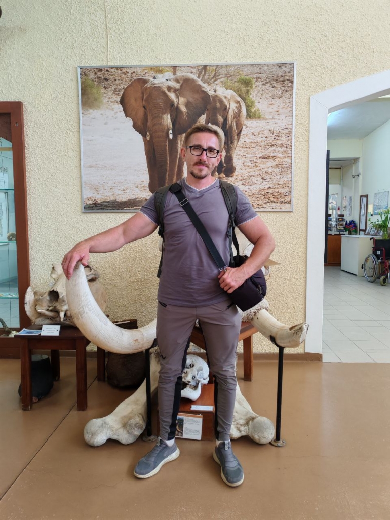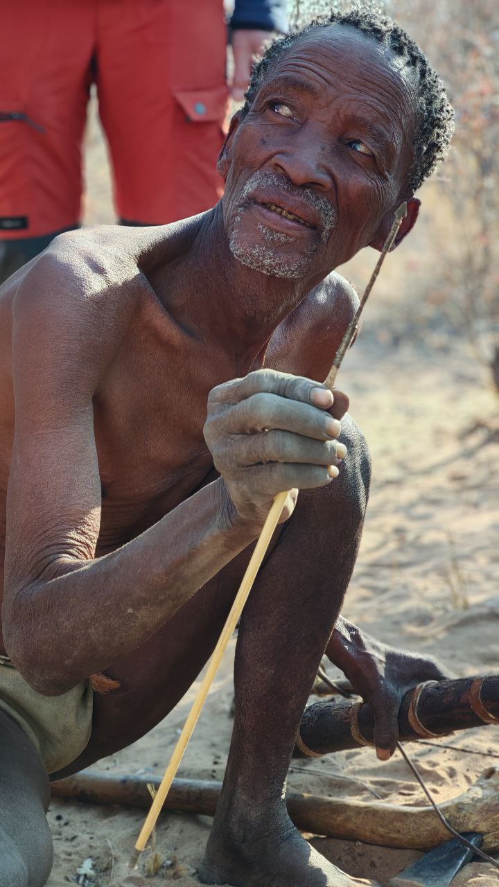 «Самым ярким и запоминающимся событием последних дней в Намибии стало посещение одного из племен людей сан. Они являются прародителями всех современных людей, так как носят наиболее древний генотип. Появились они не менее 60 000 лет назад. С тех пор их быт и культура не претерпели сильных изменений».