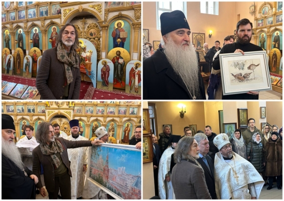 Владыка не остался в долгу — наградил художника медалью блаженного Андрея Симбирского 3 степени. Последний раз публично такую медаль вручали несколько лет назад — руководителю Союза православных женщин и Агентства ветеринарии Нине Пелевиной.