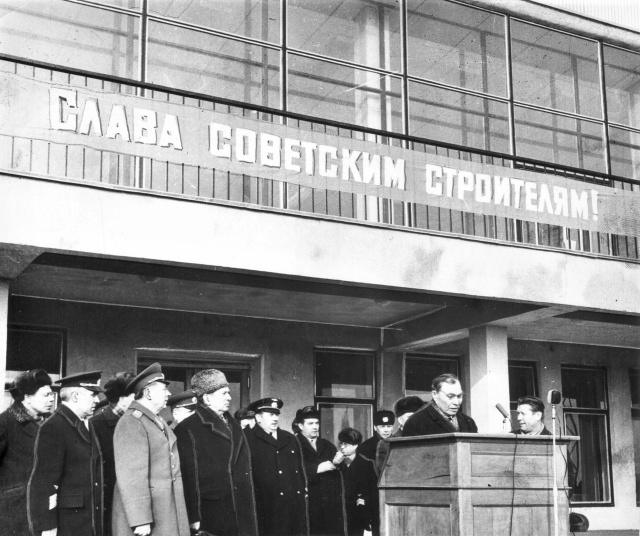 Министр гражданской авиации СССР маршал Логинов выступает на открытии Ульяновского аэропорта, 24 марта 1970 года