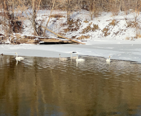 В райцентре Новоспасское Ульяновской области в районе висячих мостов на реке Сызранка вчера, 16 февраля, была замечена стая лебедей. Очевидцы отмечают, что такое явление видят первый раз.