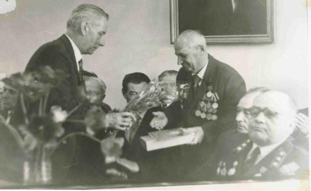 Встреча с ветеранами - прокурор области Жданов Ф.В. вручает подарки в честь празднования Дня Победы.