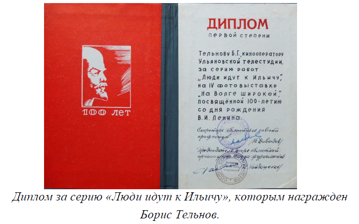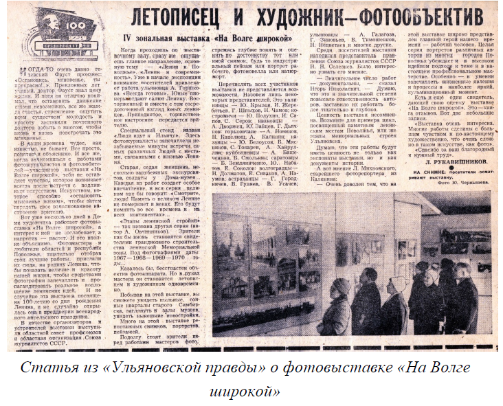 В 1970-м году наш фотоклуб стал одним из организаторов 4-й зональной фотовыставки «На Волге широкой», открыли ее к 100-летию со дня рождения Ленина, она была наиболее масштабной. На этой выставке моя серия работ «Люди идут к Ильичу» получила диплом первой степени и мне жюри вручило главный приз.