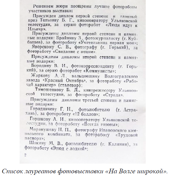 Фотовыставка «На Волге широкой», 1970-й год. Воспоминания Бориса Тельнова.............................................................88