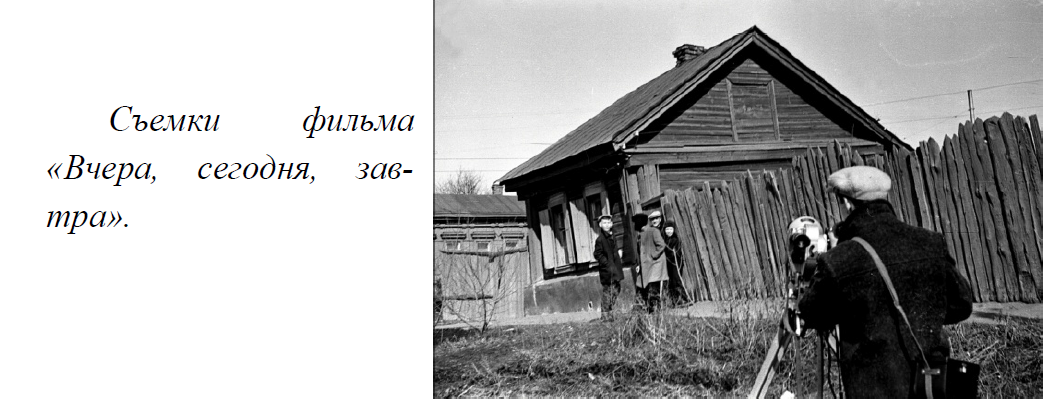 Директор Шушенского музея Городецкий, узнав, что я приехал с родины Ленина, помог мне наметить план съёмок, проконсультировал по всем вопросам. По его совету я съездил в село Ермаковское и в Минусинск. А прораб-строитель, сосед по гостиничному номеру, показал мне район, в котором возводились новые жилые дома.