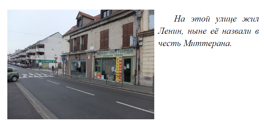 Побывал я в местечке Лонжюмо, где когда-то располагалась основанная Лениным партийная школа для российских политэмигрантов. Теперь это часть Парижа, но дома на улице Миттерана всё те же, девятнадцатого века. Три года семья Ленина снимала в одном из них квартиру на втором этаже.