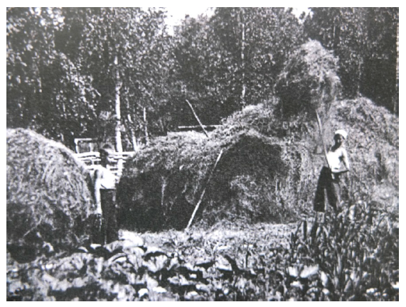 Участок для сенокоса выделили километрах в пяти от Майны у железной дороги, ходила мать туда пешком, по шпалам. Заготовка сена была в основном на ней. В отличии от Вохмы, где стога метали на местах косьбы, огораживая их от скотины, в Майне заготовленное сено надо было привозить к дому – иначе своруют. К концу сенокосной поры мать была уставшая, изможденная.