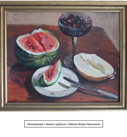 Кроме производственных мастерских Союза, удалось оборудовать под студию помещение в полуподвале дома на улице Энгельса — там с Петром работали художники Борис Клевогин и Александр Крашенинников. К ним на «огонек» можно было забежать поговорить, заказать картинку. Однажды с художником Петром Андреевым после удачной охоты мы сварили в мастерской у Петра шулюмку из лосятины. Там с кинокамерой я позировал Никитенко для своего портрета, его демонстрировали на областной выставке. Сейчас то полотно висит у меня на стене — как добрая память об авторе и нашей дружбе.
