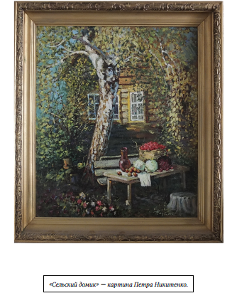 Мне особенно приятно было видеть картину «Сельский домик» — на ней Петр нарисовал мое деревенское жилище. Стол под раскидистой старой березой, за которым мы часто сидели вместе. На нем он изобразил все, чем богата осень — капусту, корзину с помидорами, картошку, балакирь с молоком.