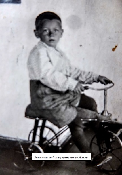 Домой он привёз много буклетов, открыток, фотографий, фруктов и сладостей, а для меня — трёхколесный велосипед.