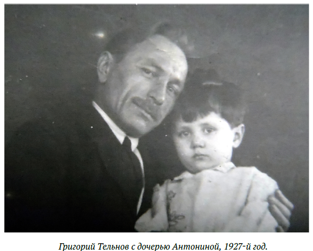 В 1925 году в семье Григория и Евдокии Тельновых родился первенец — дочка Антонина. Но семейное счастье продлилось недолго, через четыре года жена Г. Я. Тельнова умерла. Заботы о маленькой Тонечке взяла на себя сестра Евдокия.