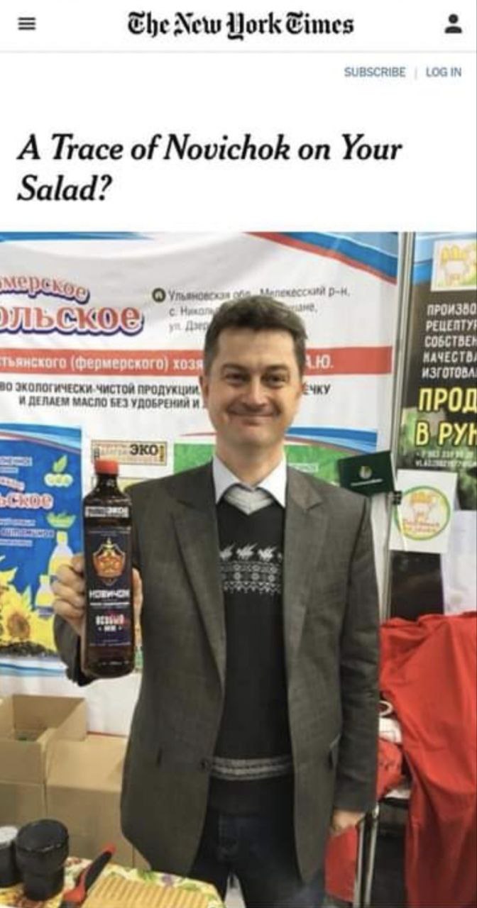 — Об этом можно, наверное, написать отдельный рассказ. В 2018 году я начал производить качественное подсолнечное масло и назвал его «Новичок», в этом же году отравили Скрипалей. И название «Новичок» звучало в мировых СМИ немного в другой интерпретации. Тем не менее тогда на сельхозвыставке я выставил свой «Новичок», и на меня обрушилась мировая слава. В The New York Times на первой полосе вышла статья с заголовком: «Новичок — теперь у вас в салате». Russia Today несколько раз брали у меня интервью, и я решил воспользоваться внезапно свалившейся на мою голову славой, чтобы помочь многодетным семьям в Димитровграде.