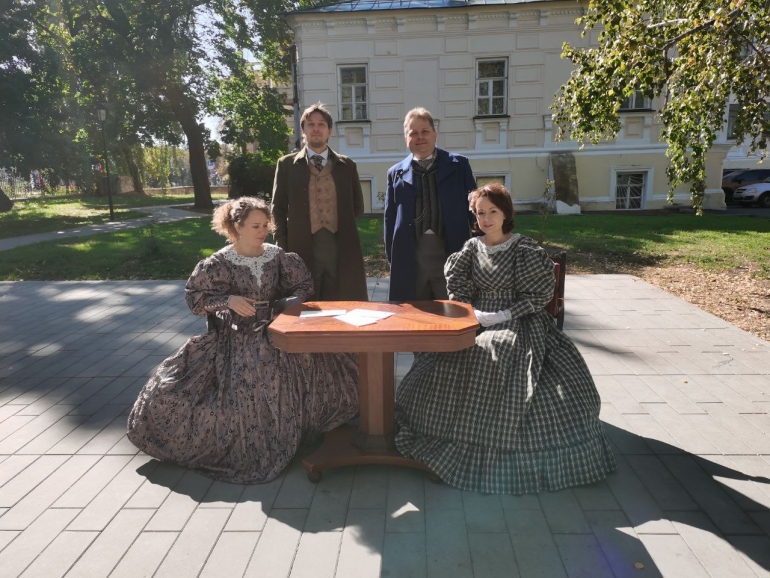 Вот такие персонажи в сквере Языковых проводили для всех желающих иммерсивные экскурсии «Однажды в доме Языковых» и «Гончаров: свой среди своих» с полным погружением в эпоху 19 века.