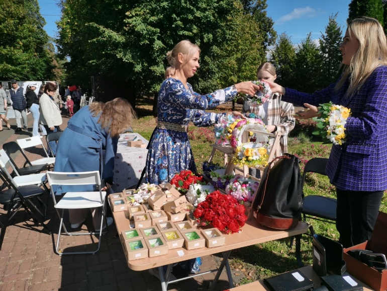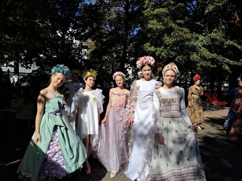 Тут же на бульваре Новый венец в рамках проекта «Пластов в моде» все желающие могли сделать кокошник из цветов.