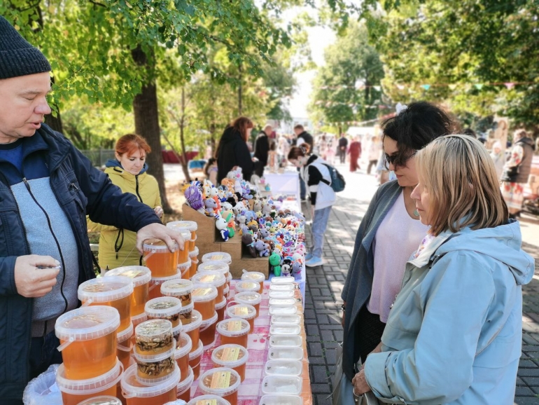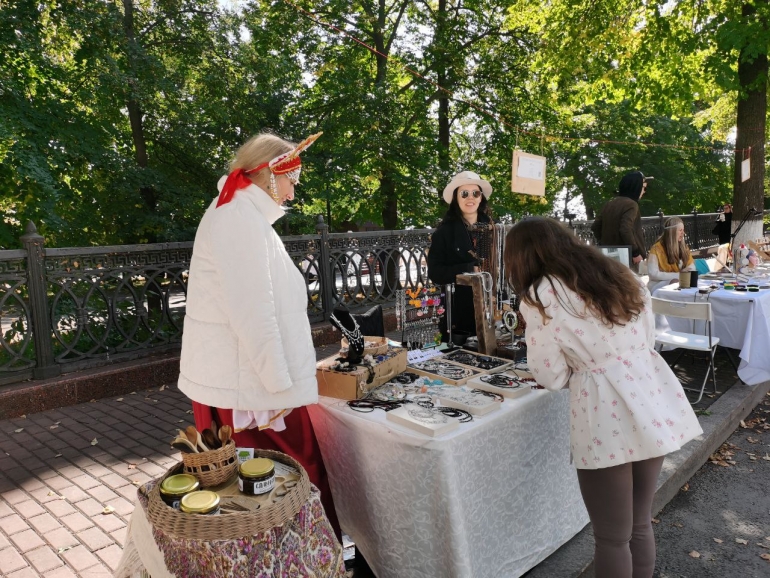И на каждом шагу умельцы региона и гости города продавали свои изделия. Даже дресс-код у них был свой - народный.