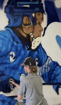 Как рассказали в ульяновском ХК «Волга», граффити выполнил художник-муралист, руководитель творческого объединения «Команда Хорошо» Данила Лапшин. На стенах появилось изображение логотипа хоккейной команды и спортсменов в процессе игрыю