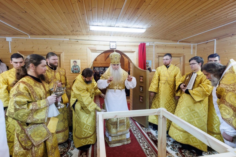 После освящения храма Владыка совершил в нем Божественную литургию.