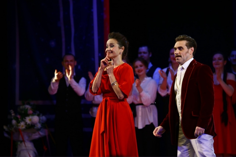 А после спектакля коллеги приготовили бенефициантам театральный капустник. Алексея и Дарью поздравляли герои фильма «Иван Васильевич меняет профессию» в исполнении актёров ульяновского драматического и мюзикла «Кабаре» от Молодёжного театра, в котором Храбсков – художественный руководитель, а Долматова – режиссёр и актриса. На сцену вышли их однокурсники, некоторые приехали ради бенефиса из других городов. Алексей и Дарья такого сюрприза не ожидали и растрогались до слёз. Поздравили виновников торжества директор драмтеатра Наталья Никонорова и министр искусства и культурной политики Ульяновской области Евгения Сидорова. За кулисами они даже поспорили, кто кому будет вручать букет.
