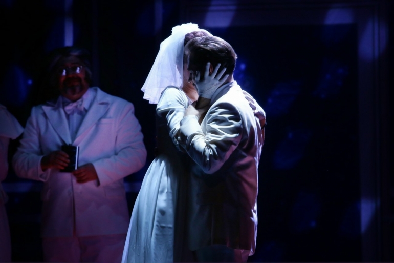 В качестве премьерного бенефисного спектакля выбрали комедию Эдуардо де Филиппо «Брак по-итальянски». Главные герои – персонажи Храбскова и Долматовой – тоже семейная пара. Она – Филумена Мартурано, бывшая проститутка с тремя детьми от разных мужчин, он – Доменико Сореано, успешный бизнесмен-кондитер, отец одного из троих взрослых детей своей жены. По сюжету Филумена и Доменико дважды женятся и венчаются и один раз расходятся. Бушуют итальянские страсти. В общем, есть, что сыграть.