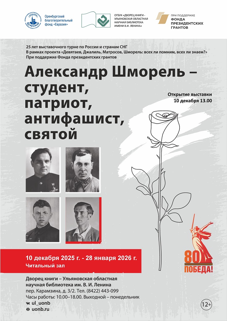 10 декабря в 13.00 в читальном зале Дворца книги состоится торжественное открытие выставки «Александр Шморель – студент, патриот, антифашист, святой».