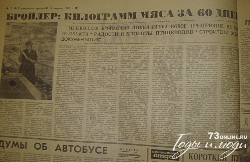 Как уже сообщала «Ульяновская правда», вначале года вступила в строй первая очередь Мелекесской бройлерной птицефабрики. Птицеводы получили в свое распоряжение около трех десятков производственных помещений (...) Уже в этом году птицеводы должны откормить 360 тысяч цыплят (...)