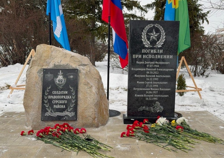 17 декабря в рабочем поселке Сурское Ульяновской области состоялась торжественная церемония открытия мемориального комплекса «Сотрудникам правопорядка Сурского района» и «Погибшим при исполнении служебного долга».