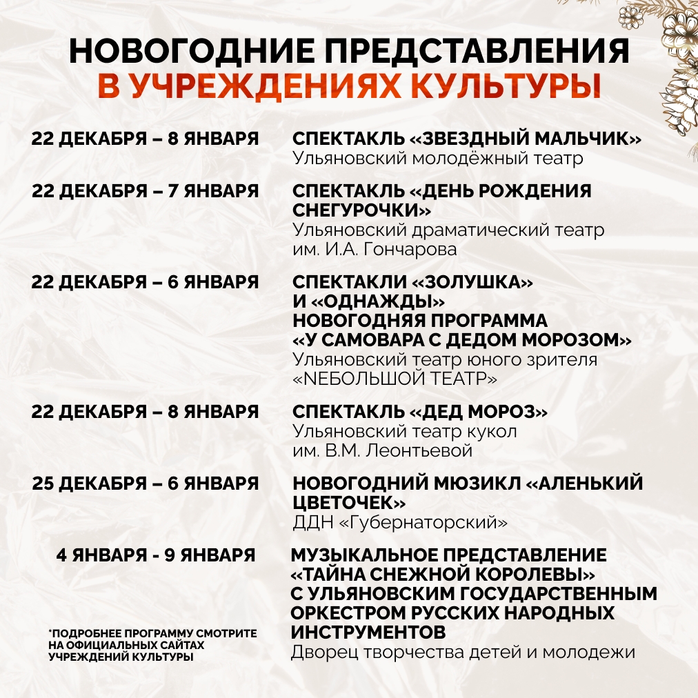 Новогодняя программа-2025-2026 в Ульяновске: Соборная площадь, парки, театры