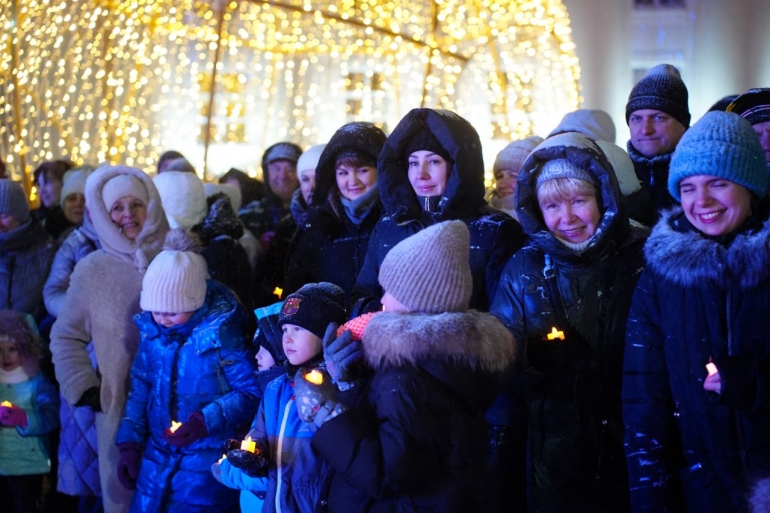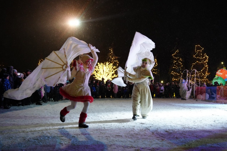 На площади выступила московская группа «Вселена-фолк», прошел перформанс от «Непредсказуемого Предсказателя» из Санкт-Петербурга, а также зрелищное представление «Лунная рапсодия» от уличного театра «Пластилиновый дождь». Кульминацией вечера стало традиционное зажжение огней на ёлке.