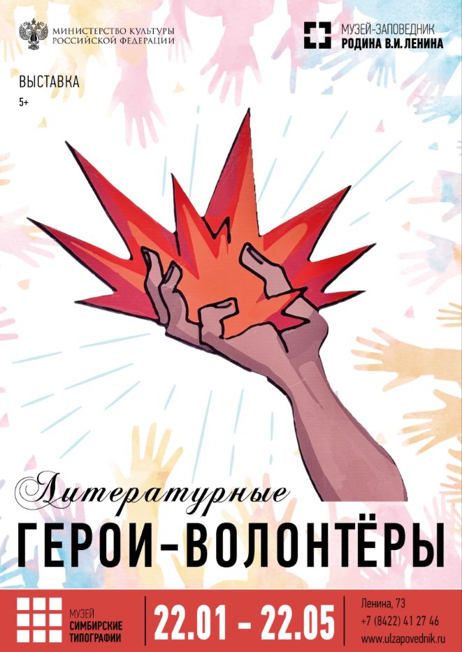 Музей-заповедник «Родина В.И. Ленина» сообщает, что 22 января в Ульяновске открылась выставка «Литературные герои-волонтёры». Посетителей ждут в музее «Симбирские типографии» по адресу: улица Ленина, 73.