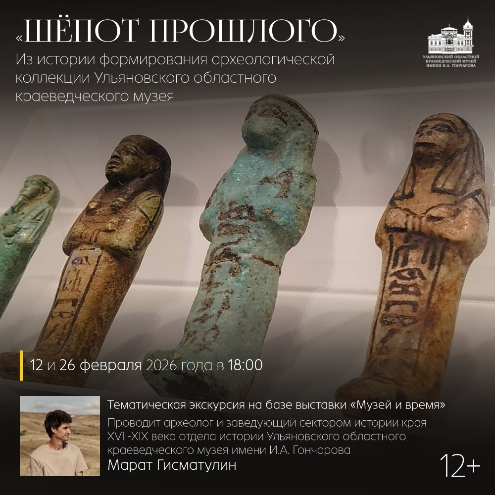 «Мы приглашаем вас не просто на экскурсию, а на уникальный диалог с прошлым под руководством квалифицированного археолога, заведующего сектором истории края XVII–XIX веков отдела истории Ульяновского областного краеведческого музея имени И.А. Гончарова Марата Гисматулина. Вы узнаете, как в наш город попали древнеегипетские «ушебти» - фигурки-слуги в загробной жизни и какие послания из I тыс. до н.э. скрывают их иероглифы, расшифрованные известным египтологом Виктором Солкиным», - сообщили в музее.