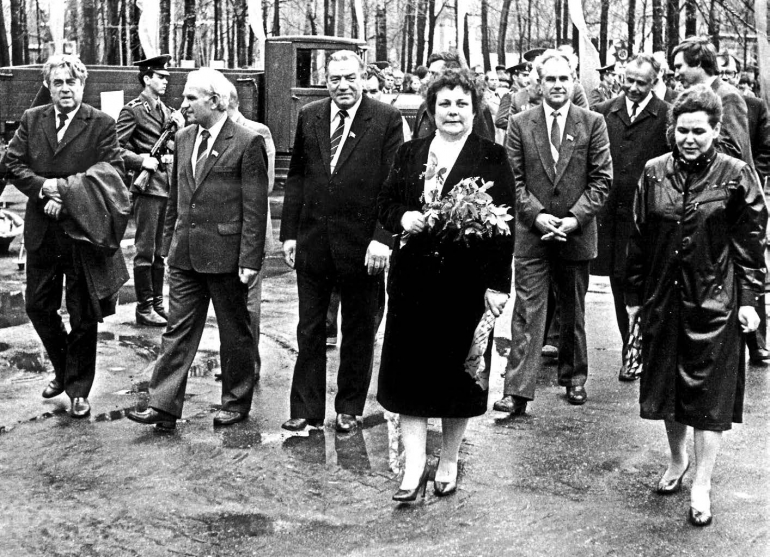 Первые лица области на праздновании Дня Победы в парке им. Свердлова, 1985 год.Слева направо: секретарь обкома по идеологии Владимир Сверкалов, председатель облисполкома Александр Большов, первый секретарь обкома Геннадий Колбин, заведующая отделом внешнеэкономических связей облисполкома Галина Благовская, второй секретарь обкома Юрий Самсонов, заведующая отделом идеологии и агитации Валентина Баскакова: