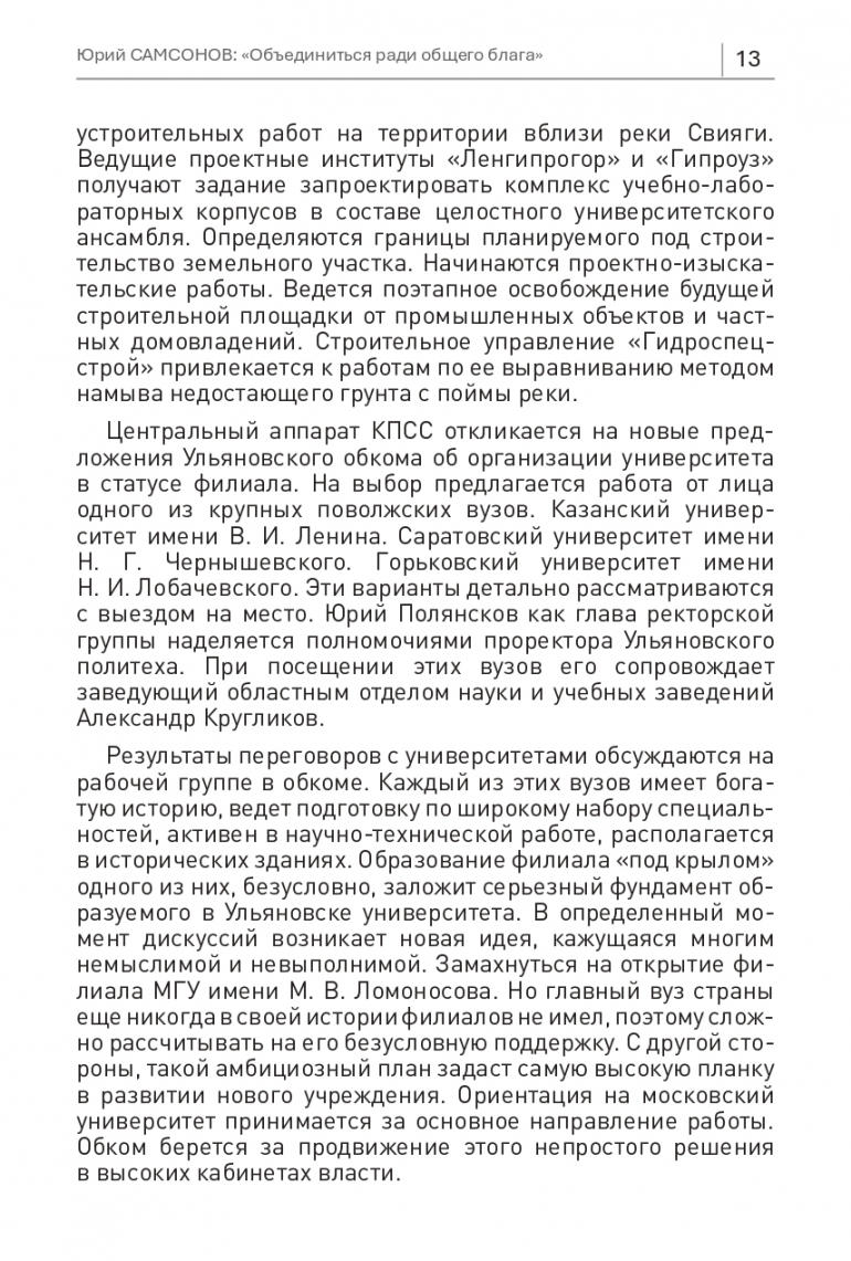 С начала 1986 года начинается планомерная подготовка к открытию университета в Ульяновске. Учитывая высокую важность решаемых задач, ректорской группе предоставляется возможность прямого выхода на второго секретаря обкома Юрия Самсонова. Одним из первых вопросов, который он обсуждает с Юрием Полянсковым, становится выбор концепции создания вуза. Очевидно, что на начальном этапе нужно опереться на историю, традиции, базу уже сложившегося университета. Это позволит с самого начала утвердить центральное место ульяновского вуза и получать поддержку от «старшего брата» при решении текущих вопросов.