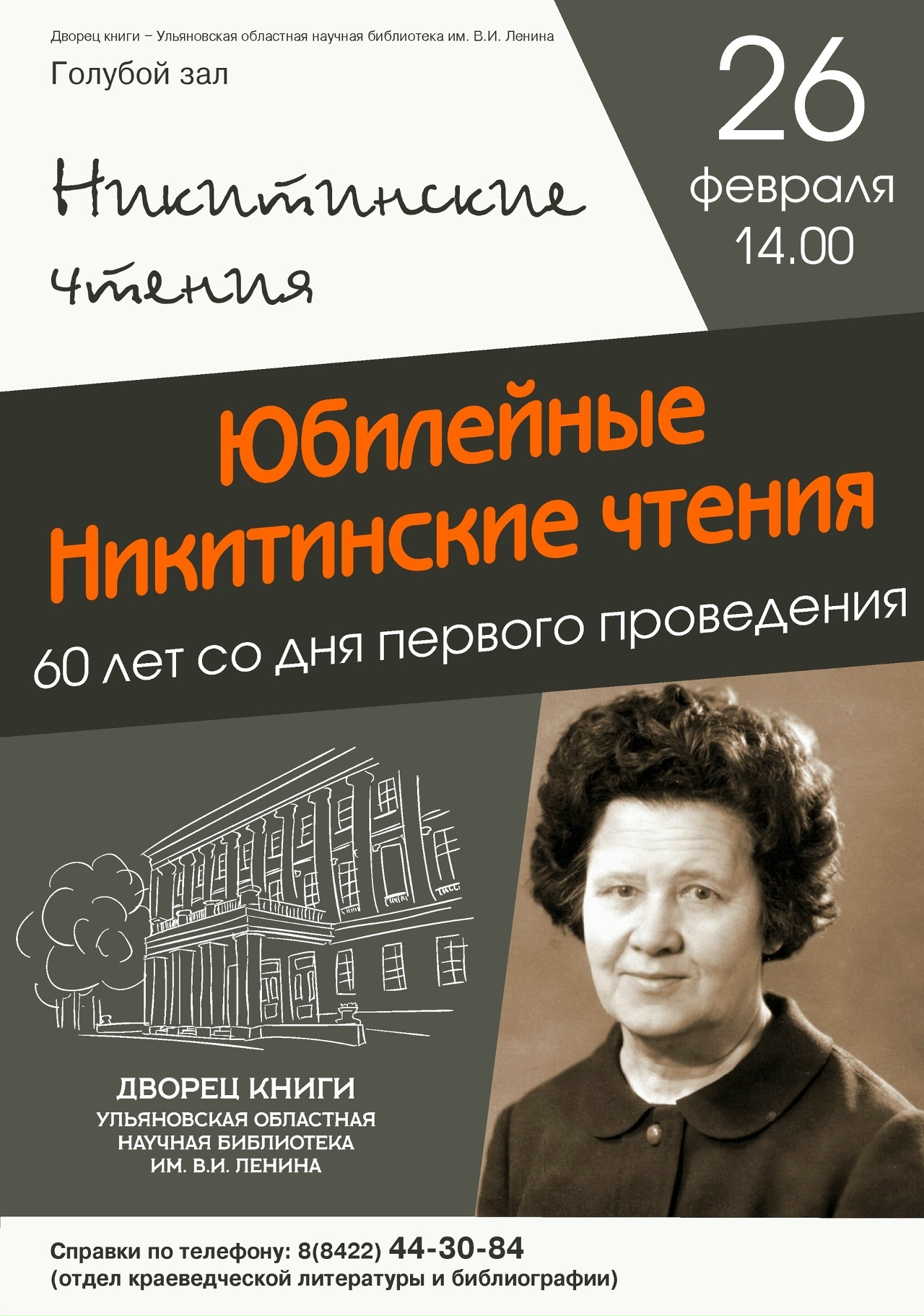 26 февраля в 14.00 Голубом зале Дворца книги (2 этаж старого здания) состоятся Юбилейные Никитинские чтения.