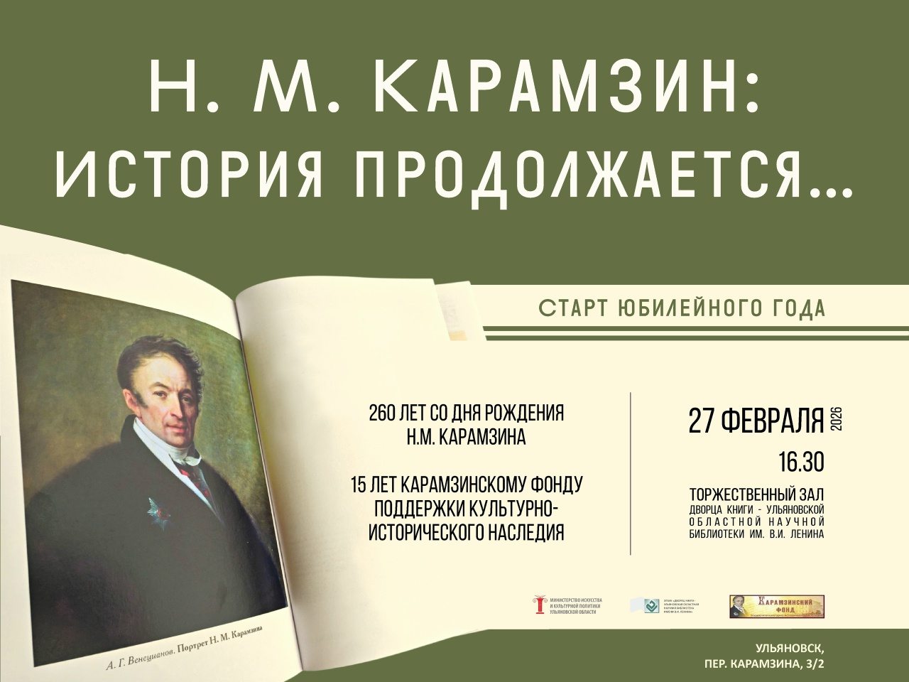 27 февраля в 16:30 в Торжественном зале Дворца книги – Ульяновской областной научной библиотеки имени В.И. Ленина будет дан старт юбилейного года историографа Николая Карамзина.