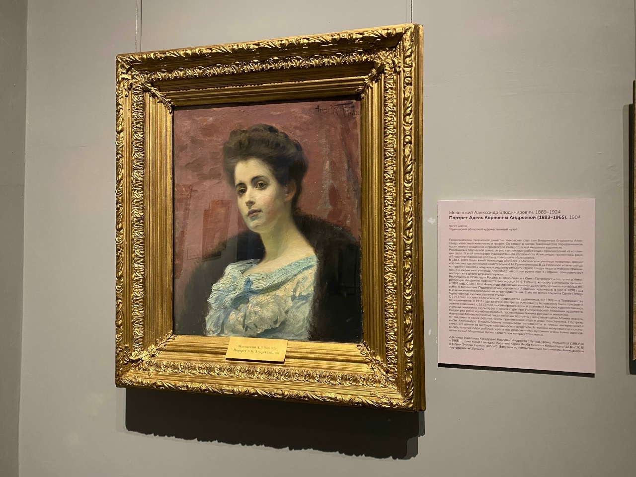 Портрет Адели Карловны Андреевой (1883-1965), датированный 1904 годом, является прекрасным образцом живописного мастерства Александра Маковского. Художник умело передал изысканность и артистизм своей модели.